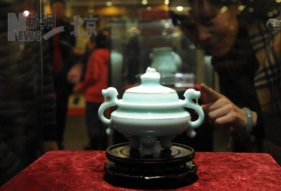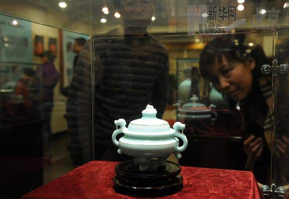12月5日,觀眾在北京合璧興陶瓷藝術(shù)館參觀龍泉青瓷作品。