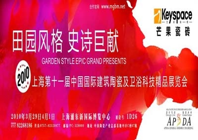 2010年3月29日—4月1日,“第十一屆中國(guó)國(guó)際建筑陶瓷及衛(wèi)浴科技精品展覽會(huì)”將在亞洲規(guī)模最大、最現(xiàn)代化的展館之一——上海浦東新國(guó)際博覽中心隆重召開(kāi),展會(huì)同期將聯(lián)袂“第十八屆中國(guó)國(guó)際建筑裝飾展覽會(huì)”、 亞洲最大的“第十九屆上海國(guó)際酒店用品展”、設(shè)計(jì)盛典“2010中國(guó)國(guó)際建筑及室內(nèi)設(shè)計(jì)節(jié)”等共同登場(chǎng),譜寫(xiě)年度行業(yè)最令人期待的盛會(huì)。