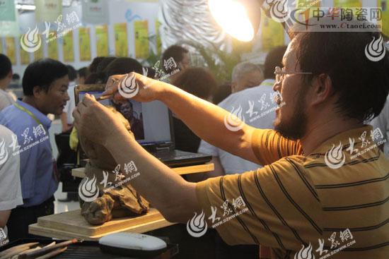 進入陶博會當代國窯展現(xiàn)場,不少市民首先被一陣“叮叮咚咚”的聲音吸引。這是十余位刻瓷大師們正在采用純手工技法,精心刻制瓷盤。另一側(cè),是制陶大師們現(xiàn)場制陶。有的在做花瓶,有的在制瓷盤,還有一位大師在塑造陶像。市民王先生驚奇的稱贊:“這位師傅看人的照片就能塑造陶像,而且如此惟妙惟肖,真神啦!”還有不少陶瓷工藝美術(shù)大師當場在花瓶瓷盤上勾勒作畫,引得大家駐足欣賞。“China,中國,瓷器,真的是一項偉大的藝術(shù)!”加拿大留學生麥克由衷贊嘆。