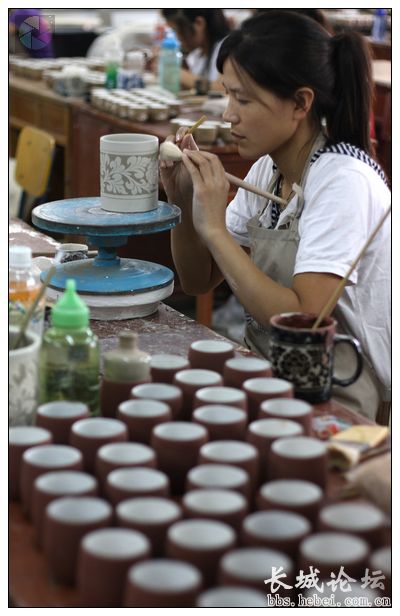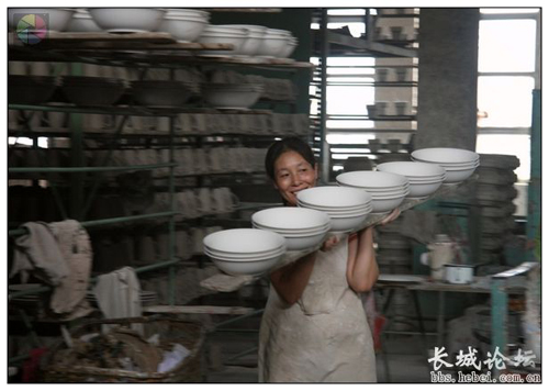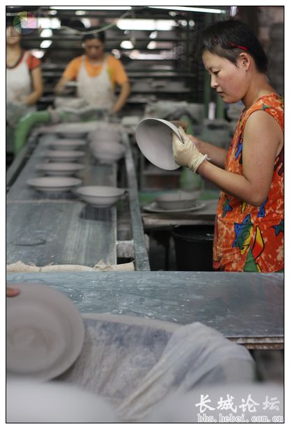 認(rèn)真檢查坯子的女工?琢畋 攝