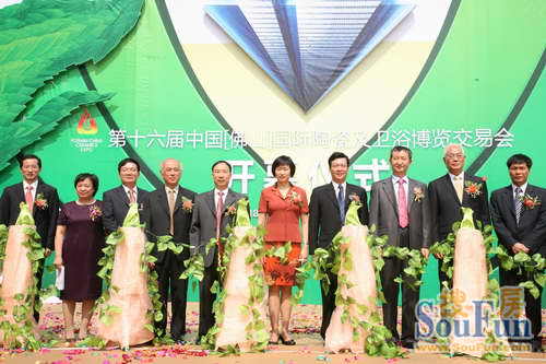 在最后的剪彩儀式上,當(dāng)各位領(lǐng)導(dǎo)連接起象征著綠色科技之火、綠色環(huán)保之火的火炬之柱時,寓意著科技與環(huán)保的結(jié)合,政府與企業(yè)齊心協(xié)力打造舒適環(huán)保家居生活環(huán)境的第16屆中國[佛山]國際陶瓷及衛(wèi)浴博覽交易會開幕典禮圓滿結(jié)束。