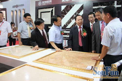 開幕典禮結(jié)束后,中國建筑材料聯(lián)合會專職副會長,中國建筑衛(wèi)生陶瓷協(xié)會會長葉向陽一行領(lǐng)導(dǎo)蒞臨佛山國際會展中心展館參觀考察,分別走訪參觀了昊博瓷磚、瑪緹瓷磚、能強陶瓷、ABM安瑪?shù)榷嗉姨沾烧箯d,對各陶瓷企業(yè)展示的新產(chǎn)品表現(xiàn)出濃厚的興趣,并對承辦方佛山中國陶瓷城發(fā)展有限公司精心組織策劃的此次展會活動給予高度的評價。