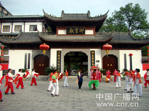 上午10時(shí),采集火種現(xiàn)場(chǎng)的景德鎮(zhèn)御窯廠內(nèi)的佑陶靈祠前彩旗飄揚(yáng),鑼鼓喧天,一片熱烈的景象。由景德鎮(zhèn)市民組織的獅子舞和腰鼓秧歌隊(duì)在現(xiàn)場(chǎng)助興表演。不少景德鎮(zhèn)市民前來(lái)觀賞這一盛事。