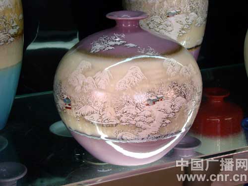 四年過去了,2010年,記者第三次參加景德鎮(zhèn)國際陶瓷博覽會,在閑暇之余再次來到了這家小店,店內展示的產品已霍然一新,不僅出現(xiàn)了不少新的造型別致的觀賞瓶,而且器形、釉色看起來特別鮮艷和亮麗,經詢問才得知,原來這是在以前結晶釉類型產品的基礎上推出的寶石釉與窯變相結合的裝飾類陶瓷新品。