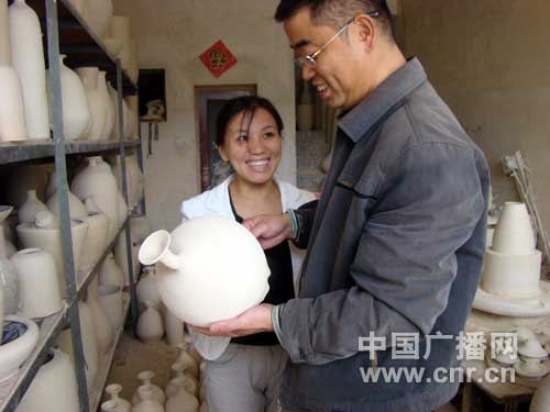 為了進一步了解陳新初這對夫婦兩年多來對自己刻意經營的陶瓷產品的發(fā)展,10月20日上午,記者如約來到了他們的工作間。陳新初、黃國珍夫婦也較為詳細地跟記者說起了他們自己的故事。陳新初向記者說:幾年前他們夫婦都是景德鎮(zhèn)國營陶瓷廠的下崗職工,然而,下崗后經過一番挫折和努力終于又干起了老本行。但即使干老本行也是逐漸在摸索中一步一步走過來的,其中的酸甜苦辣都也都嘗試過了,就像眾多的景德鎮(zhèn)下崗職工一樣,最終靠著自己的追求和努力,干出了自己的一番小天地。