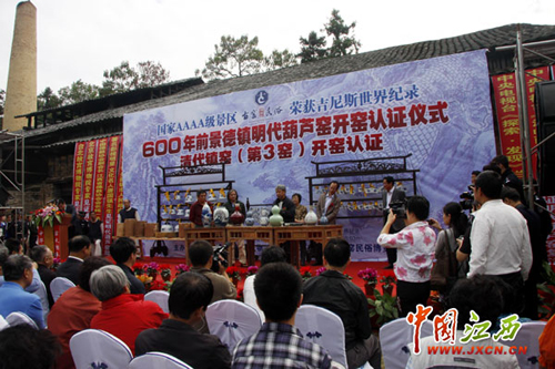 10月22日上午,景德鎮(zhèn)明代葫蘆窯和清代鎮(zhèn)窯(第3窯)復(fù)燒開窯認(rèn)證儀式在景德鎮(zhèn)古窯民俗博覽區(qū)隆重舉行。