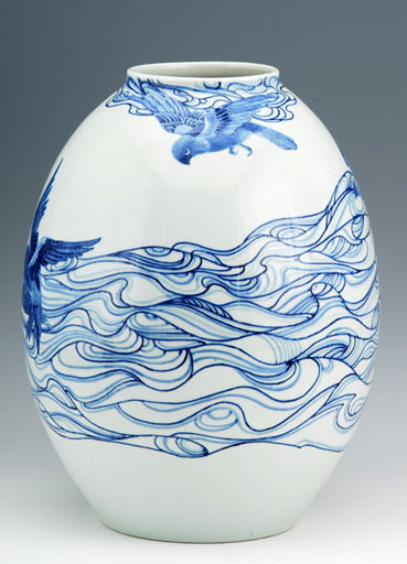 光影青花藝術(shù)創(chuàng)始人汪吟泉的青花山水, 在傳統(tǒng)的青花畫法上吸取西洋畫的光影透視, 以其“釉下填白光影青花”技法, 創(chuàng)作出“雪”,“雨”, “夜”三景, 開創(chuàng)了一個(gè)青花繪畫新樣種,受到廣大藏家的歡迎。