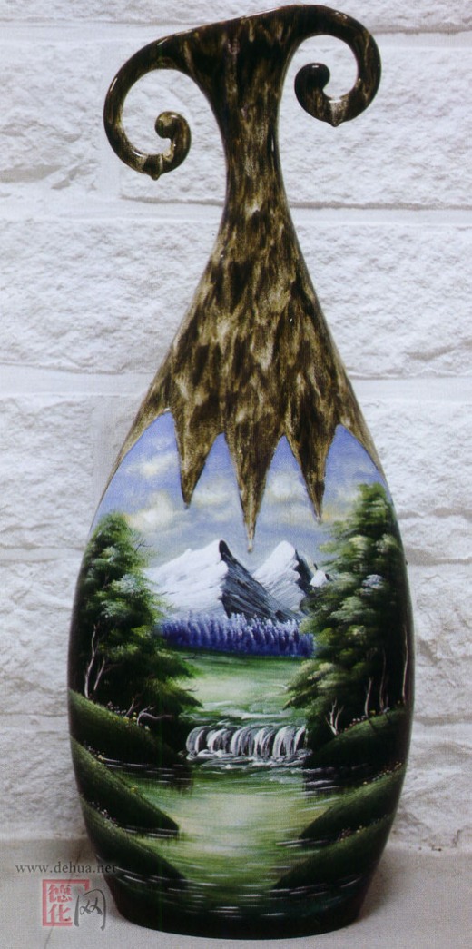 瓷器表面使用特殊處理后,交由畫家手工繪制上鮮艷的油畫作品,以畫裝點瓷器,使德化瓷產(chǎn)生這種中西合璧、古今混搭的裝飾風(fēng)格。