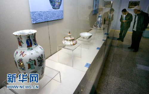 11月16日,參觀者在參觀展出的文物。當(dāng)日,從廣州博物館引進(jìn)的《海貿(mào)遺珍———古代廣州外銷藝術(shù)品展》在新疆博物館亮相。這次展出的99件(套)文物是十八、十九世紀(jì)海路貿(mào)易的外銷商品或舶來(lái)品,包括陶瓷、絲綢、珠飾、象牙雕刻制品等。此次展出將持續(xù)到2011年2月。