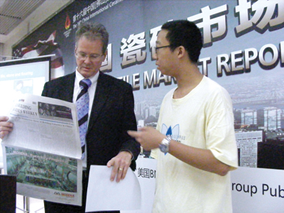 10月20日早上,由美國(guó)BNP傳媒發(fā)行人菲爾-約翰遜先生 (PhilJohnson)主講的“美國(guó)瓷磚市場(chǎng)報(bào)告”在中國(guó)陶瓷城五樓會(huì)議室召開(kāi)。到場(chǎng)聽(tīng)眾有來(lái)自各陶瓷品牌的廠家、經(jīng)銷(xiāo)商、零售商,以及普通的買(mǎi)家和媒體人士。