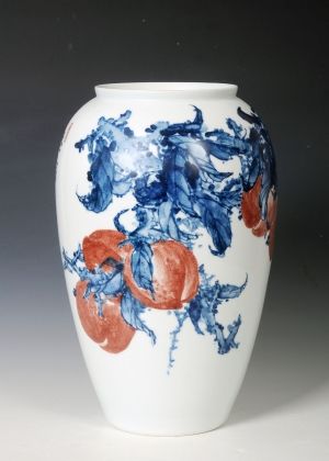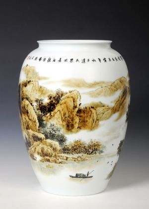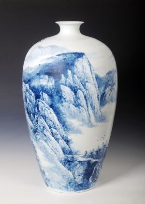 胡達(dá)民自幼酷愛繪畫,對那晶瑩剔透的白色世界有著特別的鐘愛,擅長釉上新彩、粉彩、釉下青花山水。作品構(gòu)圖新穎多變、疏密結(jié)合、取材廣泛,枯藤老樹、小橋流水、亭臺茅舍、江南秀色、水鄉(xiāng)、雪景……或工或?qū)懀すP中但見點點線線,細(xì)膩而不繁瑣、清爽自然;寫意中線面結(jié)合,釉下青花有著宣紙上的濕潤與飛白筆觸,也有彩染的虛實效果。其山水畫作品畫中有詩,常以枯藤老樹、千峰競秀、云霧橫流、山勢磅礴、吞吐萬象的全景表達(dá)出一種廣闊的意境和作者豐富的情感世界。作品深邃的靜美和氣勢恢宏的景觀,常給人一種強(qiáng)悍的感染力和無限的遐想。