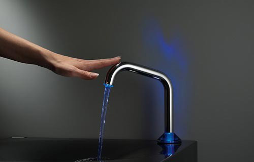 它的控制方法非常簡單,點擊一次,出冷水(藍色),兩次暖水(橙),三次熱水(紅)。內(nèi)置的LED燈讓水流呈現(xiàn)不同的顏色,提示你水的溫度。10秒后,水會自動關(guān)閉。這款水龍頭還具有清潔模式,可以自動進行清潔,只要通過較長的觸摸激活它即可。