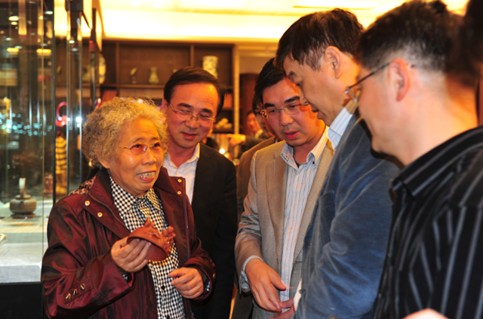 在儒士館現(xiàn)場可以看到,海西“紫砂壺大師、書畫名家”藝術(shù)展暨華祥苑第六屆茶文化節(jié)整個活動流程緊湊,精彩迭呈。釣魚臺國賓館、華祥苑、宜興陶瓷行業(yè)協(xié)會三方簽訂共同開發(fā)“釣魚臺珍藏紫砂壺”項目合作意向書;紫砂壺國家級大師汪寅仙為現(xiàn)場嘉賓講授紫砂壺知識,介紹紫砂壺制作及養(yǎng)壺經(jīng)驗;福建書法家協(xié)會的書法家、畫家現(xiàn)場揮毫潑墨等;103歲茶界泰斗張?zhí)旄SH自參與評茶……