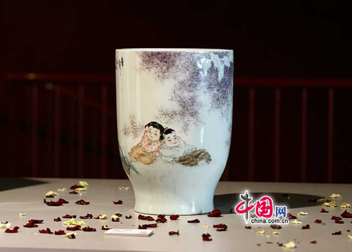 中國收藏2010十大藝術(shù)陶瓷名品展上的精美作品。童年(博夢堂 攝影報道)