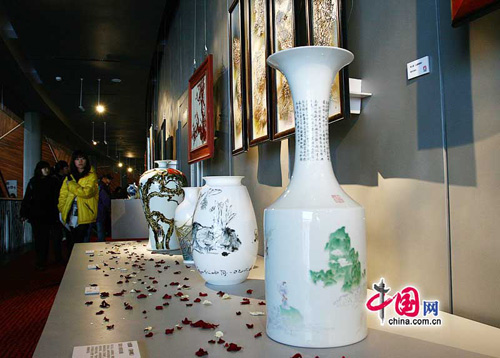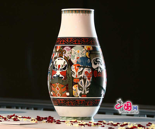 中國收藏2010十大藝術(shù)陶瓷名品展上的精美作品。樣板戲(博夢堂 攝影報道)