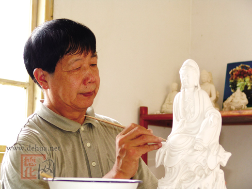 與許瑞峰不同,德化縣瑩玉藝術(shù)陶瓷研究所的蘇清河卻始終不曾離開傳統(tǒng)瓷雕!√K清河是德化“何派”技藝傳承中的一位名家,還是德化傳統(tǒng)瓷燒制技藝非物質(zhì)文化遺產(chǎn)繼承人、享受著國務(wù)院的特殊津貼。50多年的實(shí)踐,使他全面掌握了陶瓷雕塑的技能,并形成了形神兼?zhèn)、精雕?xì)刻、優(yōu)美傳神的藝術(shù)風(fēng)格。他還把瓷研所當(dāng)作一所學(xué)校授徒傳藝,先后培養(yǎng)出徒弟200多人,有的徒弟已成為國內(nèi)有名的工藝師。