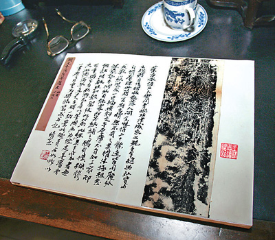 他就經(jīng)常根據(jù)自己掌握的知識,修補(bǔ)、裝裱自己的藏品。上世紀(jì)70年代初,他把選購和收集到的古代碑刻拓片加以整理,并自己裝訂成冊,名曰:《漢刻集存》、《石墨殘叢》,這樣的裱本和粘本有許多冊。很多同行、書法家見到他自制的精裝古代書法篆刻資料集皆贊嘆不已。