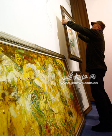 江西籍畫家方衛(wèi)國進駐江南藝術(shù)館,2月25日將正式開幕。昨日,30幅方衛(wèi)國瓷面繪畫和布面油畫作品運抵藝術(shù)館。除了自己的作品,此次方衛(wèi)國還專程從北京帶來一件曾創(chuàng)吉尼斯紀錄的最大薄胎碗,碗口寬為1.26米。尤其珍貴的是,蜚聲畫壇的老藝術(shù)家陳醉更在這件創(chuàng)下吉尼斯紀錄的薄胎碗上親筆繪畫了17個形態(tài)各異的裸體女子,目前該碗市場價已達600萬元人民幣。