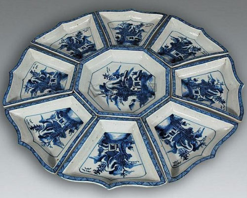 攢盤:始于明代萬歷年問,延續(xù)至清末的成套餐具。以分割成數(shù)件的盤或碗相攢組合為一個(gè)整體,故稱作“攢盤”或“攢碗”,又稱“全盤”、“全碗”,用以盛裝不同的小菜或果點(diǎn)。按其件數(shù)區(qū)別,又稱為“五子”、“七巧”、“八仙”、“九子”、“十成”。外部多以各種質(zhì)地的套盒相盛。