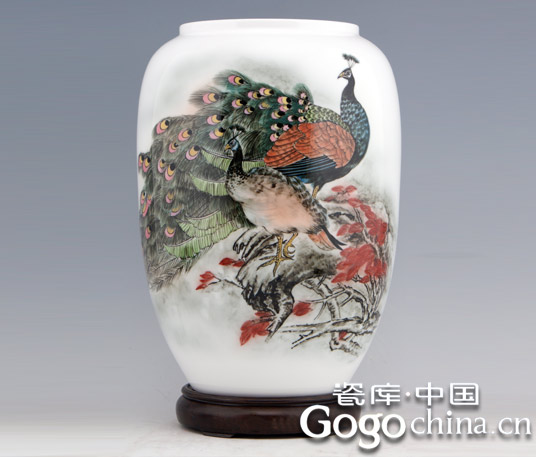 圖:孔雀絕代雙驕高檔陶瓷藝術(shù)花瓶