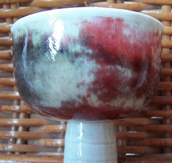 釉里目前發(fā)現(xiàn)的元代釉里紅,大體可以歸出這些特征:胎骨一般比同期青花粗,前期龍紋白胎為多,元末有白胎。器物見(jiàn)明顯的旋削痕和接胎痕。釉層早期的淡青白色或灰白色屬影青釉,透明度高,有玻璃質(zhì)感。元末見(jiàn)卵白釉淺紅油狀青白釉,不見(jiàn)同期大型青花瓷上的透明白釉。呈色不穩(wěn)、淺紅、紅和深紅的夾雜灰色,有不同程度的暈散。大多見(jiàn)于銅紅料邊緣。因燒制溫度過(guò)高,大多有燒飛狀況。