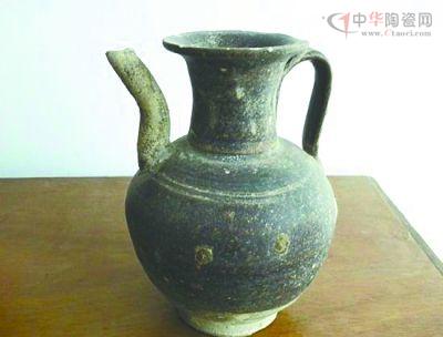 當(dāng)天,彭爹爹還駕船帶賴曉平到其他幾戶漁民家考察。在一戶漁民家,他們看到了一件非常完整的貫耳長流盤口壺。該壺為青瓷黑釉,十分優(yōu)美,典型的宋代工藝特點(diǎn)。青瓷盤口壺因在湖水中浸泡時間太長,壺嘴上面釉質(zhì)有些剝脫,并沾有出水后干枯的苔蘚。
