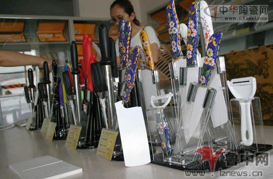 在淄博高新區(qū)一陶瓷刀展廳,各種各樣的陶瓷刀擺在桌上。