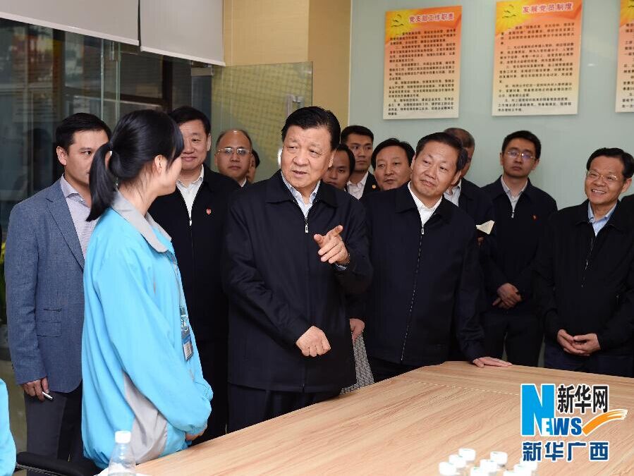 這是4月12日,劉云山在北海市調(diào)研民營企業(yè)黨建工作。