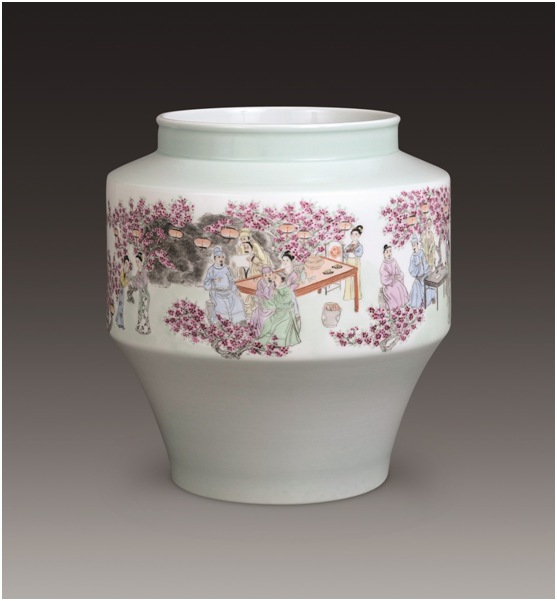 江西省高級工藝美術(shù)師付建文作品:300件粉彩瓷瓶 桃李夜宴