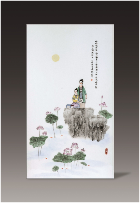 江西省高級工藝美術(shù)師付建文作品:1尺8粉彩瓷板 孟浩然詩意