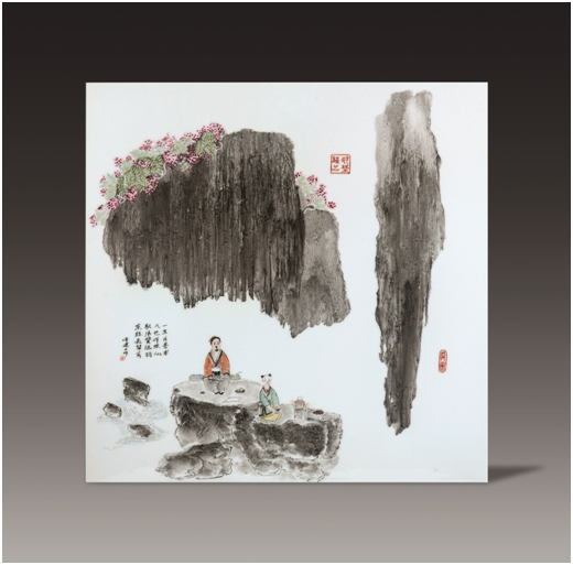 江西省高級工藝美術(shù)師付建文作品:50×50粉彩瓷板 陸羽品茶