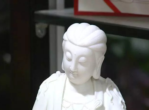 一副尼龍眼鏡,一身休閑著裝,看起來透著一股文人氣息,眼前這位正在專注雕刻的大師是陳廷實(shí),從事陶瓷技藝二十余年,專門研究觀音瓷器。陳廷實(shí)告訴記者,這些年,除了對(duì)觀音等佛像的研究,他又開始對(duì)現(xiàn)代陶瓷作品進(jìn)行創(chuàng)新開發(fā)。眼前這尊慈緣觀音就是陳廷實(shí)在一次睡夢(mèng)中得到靈感而加以創(chuàng)作的。