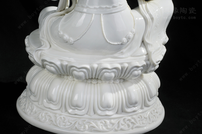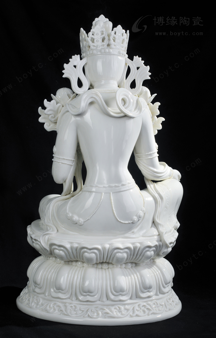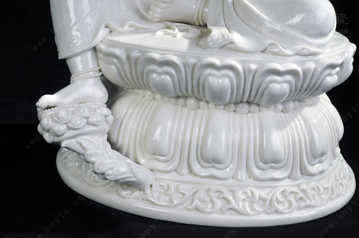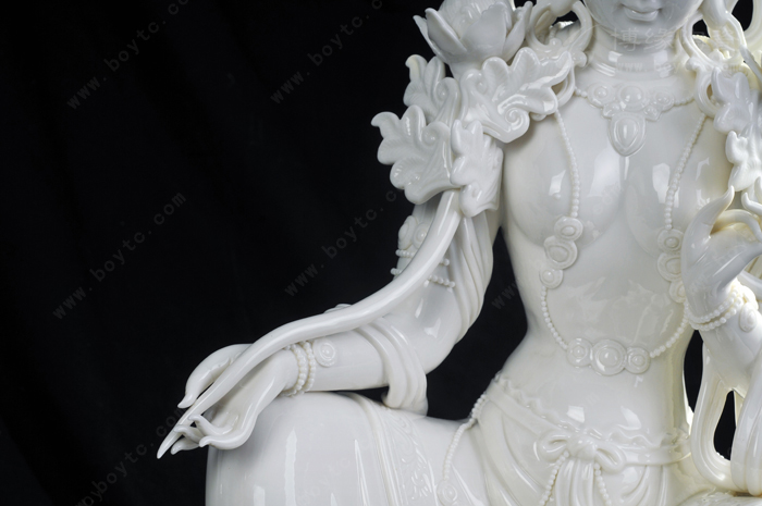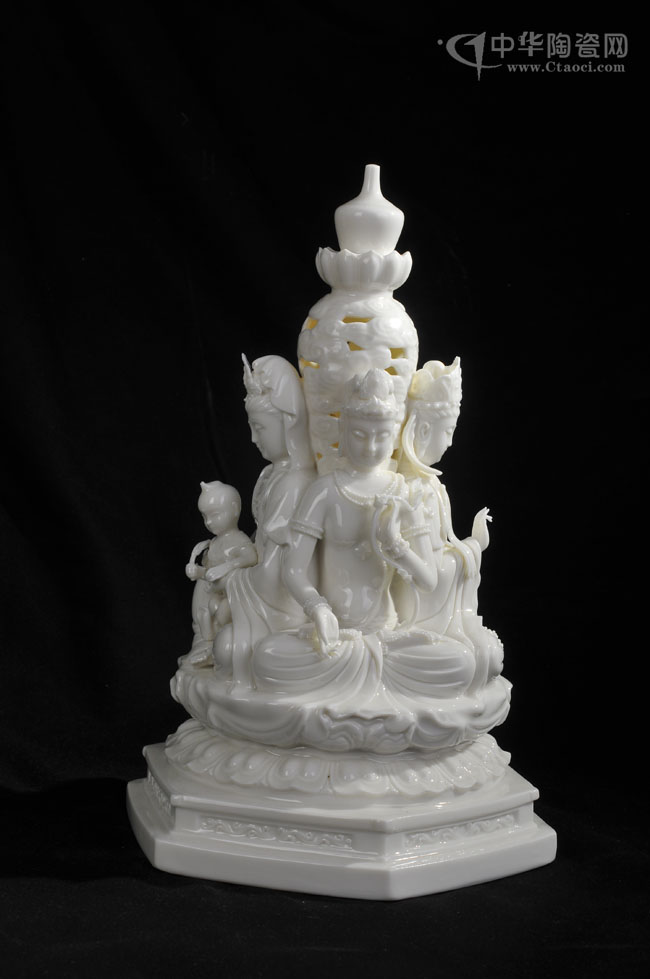 例二:“玉白釉瓷”:以前“德化白”、“中國(guó)白”完全靠瓷土好發(fā)色,最近新研發(fā)的“玉白釉”的發(fā)明,改變了長(zhǎng)期以來(lái)中國(guó)白的傳統(tǒng)概念,以創(chuàng)新方式來(lái)表達(dá)一樣中國(guó)白,和傳統(tǒng)的“中國(guó)白”相比,用“玉白釉”就可以不用很好的瓷土也能表達(dá)的非常溫潤(rùn)如玉、釉色肥厚、耐與琢磨的感覺(jué),有著典型的“豬油白“、“建白”、“象牙白”特征,跟高端的“中國(guó)白”很好的瓷土相比,不僅節(jié)省了很多成本,也創(chuàng)造了一種新的陶瓷藝術(shù)美。