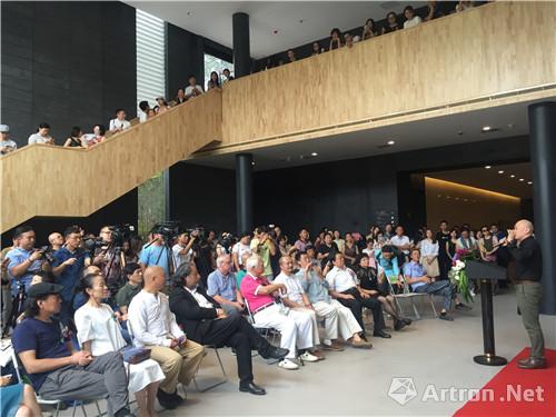 參展藝術(shù)家合影,發(fā)言為藝術(shù)家郅敏