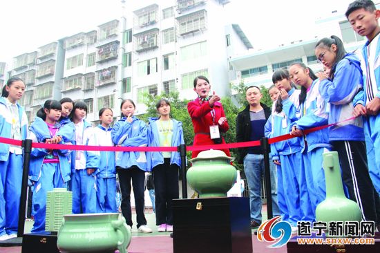 巡看國(guó)寶宋瓷 ——遂寧流動(dòng)博物館走進(jìn)校園 昨(2)日,“巡看遂寧國(guó)寶——遂寧流動(dòng)博物館”巡展活動(dòng)正式啟動(dòng)。首場(chǎng)巡展走進(jìn)大英實(shí)驗(yàn)學(xué)校,全校師生在校園里就感受到了遂寧國(guó)寶的魅力。 流動(dòng)博物館活動(dòng)由市教育局、市文廣新局組織,由四川宋瓷博物館送達(dá)全市各中小學(xué)校展覽;顒(dòng)將長(zhǎng)期開(kāi)展,每周將走進(jìn)3所遂寧的中小學(xué)校展覽,四川宋瓷博物館還將不斷更新展覽的主題,讓全市的中小學(xué)生更直觀、更系統(tǒng)地了解遂寧歷史,弘揚(yáng)傳統(tǒng)文化。