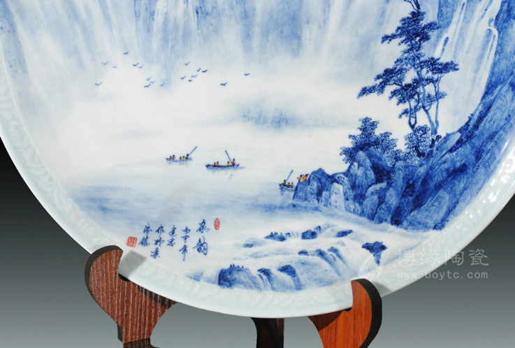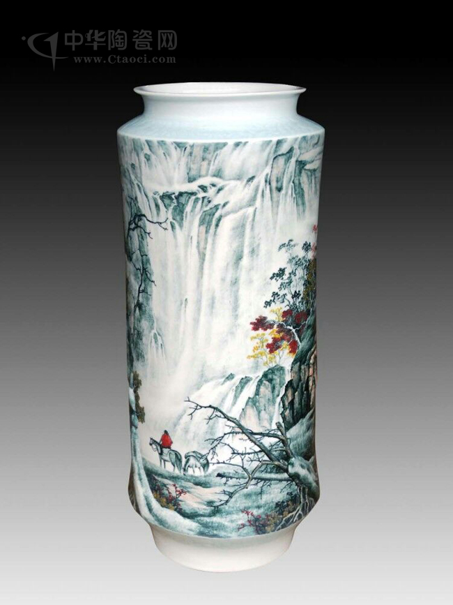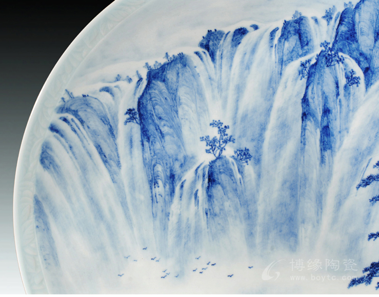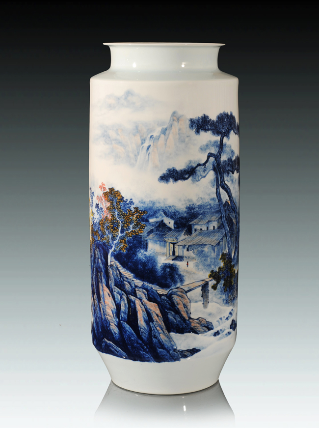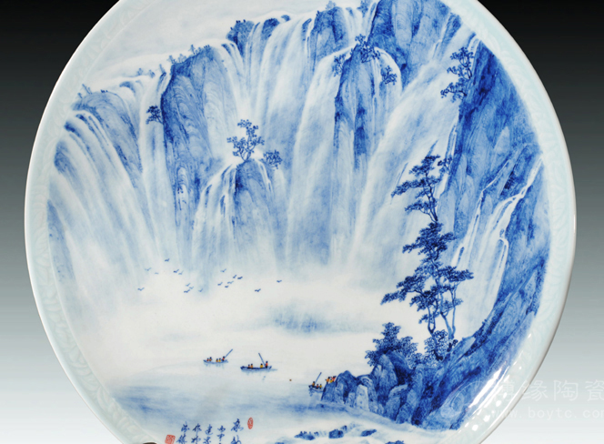 經(jīng)過在實(shí)踐中不斷探索和創(chuàng)新,形成了自己獨(dú)特的藝術(shù)風(fēng)格即"釉下堆雕山水",使作品具有獨(dú)特質(zhì)感效果。