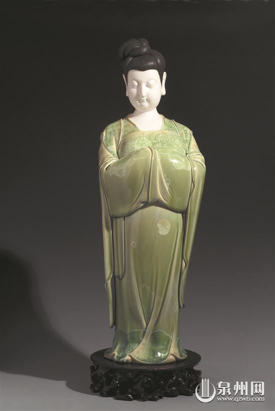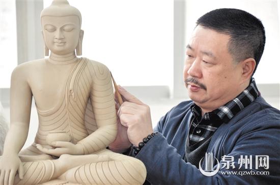 我們平時(shí)所見藏傳佛像多為銅像,但在林建勝的“聚玉堂”藝術(shù)館內(nèi),記者見到的如《長壽佛》《綠度母》等藏傳佛教造像作品,則是用德化白瓷來表現(xiàn)。林建勝說,這些年他在研習(xí)藏傳佛教,也在創(chuàng)作這方面的作品。為做好作品,他專門去西藏等地感受風(fēng)土人情,學(xué)習(xí)當(dāng)?shù)匚幕。他說,只有不斷學(xué)習(xí)、親身體驗(yàn),作品才更真實(shí),才更有靈性。