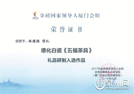 2013年,林建勝還發(fā)明了名貴瓷種——“玉黃瓷”。“玉黃瓷”采用德化上等高嶺土經(jīng)1333℃高溫?zé)贫,瓷質(zhì)泛黃,集脂潤、純凈、細(xì)膩于一身,質(zhì)感有如“石中之王”田黃。