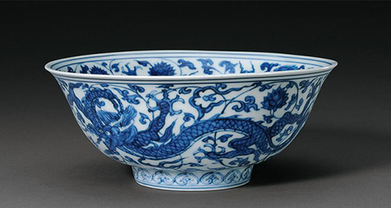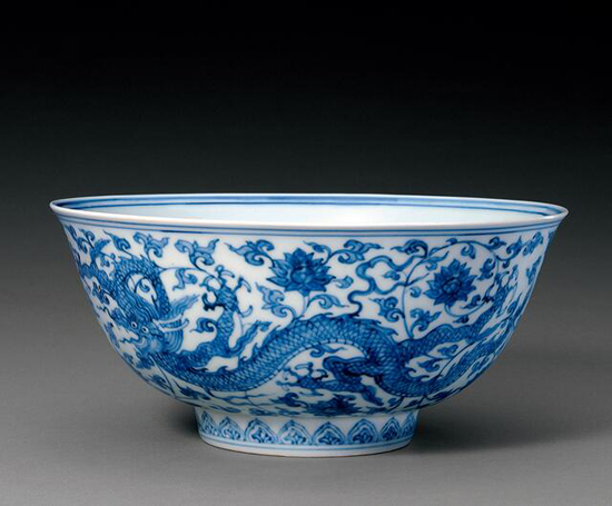 該部分展柜背景圖所展示的正德青花八思巴文款龍穿纏枝蓮紋碗(心)圖