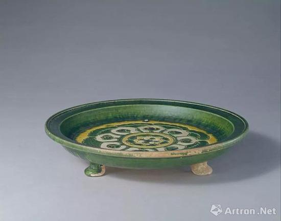 這時(shí)的三彩釉色潤(rùn)瑩,賦彩自然,采用混釉技法,器皿多為內(nèi)外滿釉,色彩有綠、黃、白、藍(lán)、黑等;裝飾手法除了刻花、印花外,還廣泛使用堆貼和捏塑;裝飾內(nèi)容豐富多彩,花鳥走獸無(wú)所不包。