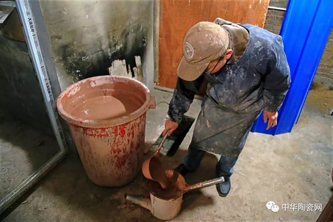 北宋官瓷是為宋代“官、汝、哥、定、鈞”五大名窯之一,創(chuàng)建于我國北宋末年,當(dāng)時宋徽宗為燒制出符合國儀之用的莊重禮器,引入汝瓷及開封東窯等窯口窯系的制作精華,在今河南開封親自創(chuàng)制的一個青瓷名品。官瓷是我國陶瓷史上第一個由朝廷投資興建的“國有”窯口,也是第一個被皇帝個人壟斷的瓷器種類。圖為人工出漿