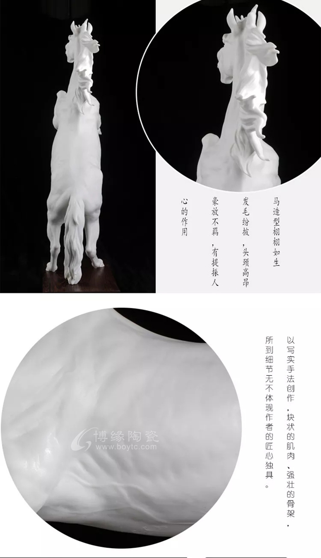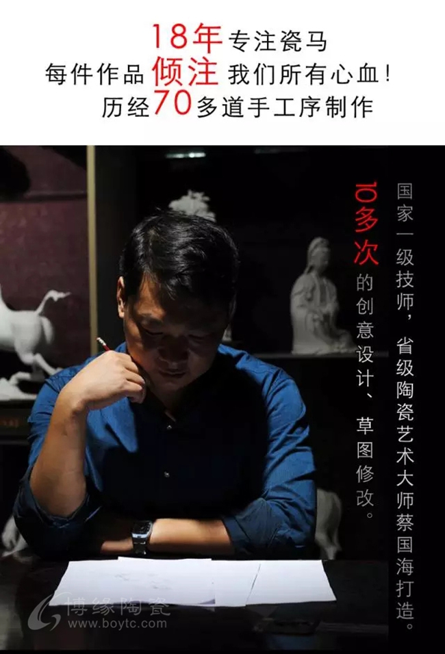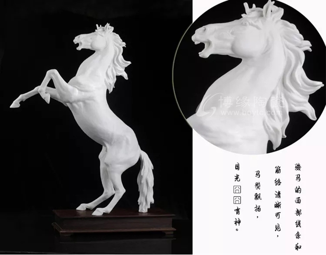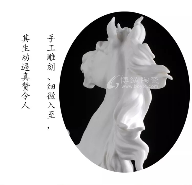 省大師18年專注瓷馬,手工白瓷瓷雕匠心打造,其造型非凡獨(dú)特,需經(jīng)1330多度高溫?zé)疲蹩量痰闹圃旃に嚺c較低的成品率,彰顯中國(guó)白瓷瓷馬的珍貴性。