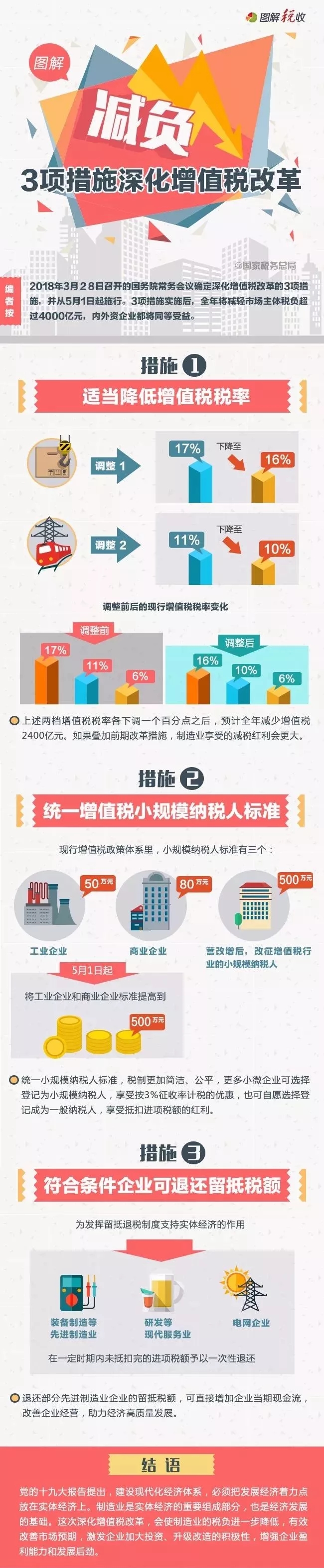 2018年3月28日召開的國務(wù)院常務(wù)會議確定深化增值稅改革的3項措施,并從5月1日起施行。3項措施實施后,全年將減輕市場主體稅負超過4000億元,內(nèi)外資企業(yè)都將同等受益。