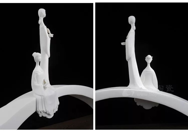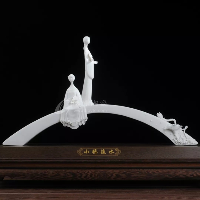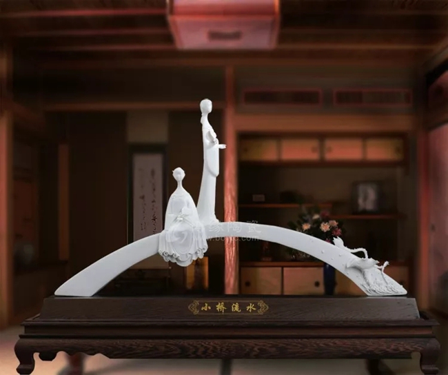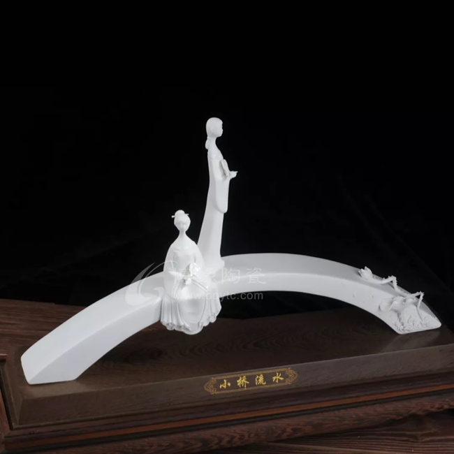 作品以德化優(yōu)質(zhì)的白瓷為材料,運用極其概括的藝術(shù)手法,顯現(xiàn)出一副恬靜的畫面,作品以妙齡少女,小橋,荷花為作品主題,把作品雕刻的栩栩如生,讓人觸景生情勾勒起江南之美,如畫的風景,讓人不由駐足欣賞這美景,晨光照應著小橋邊的荷花,流水,春風吹拂著江南的水,水波微微蕩漾著,怎能叫人錯過如此美景。。。