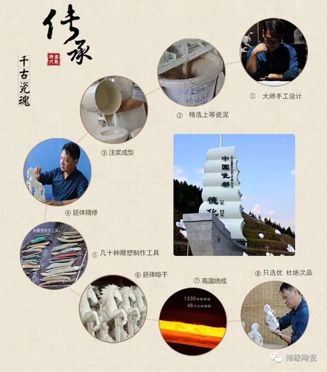 德化的陶瓷始于新石器時代,興于唐宋,盛于明清,現(xiàn)為世界最大的工藝陶瓷出口基地,2015年被授予“世界陶瓷之都”德化陶瓷手工制作技法獨特,技藝精湛,歷代瓷雕大師創(chuàng)作的作品被海內外博物館廣泛珍藏,譽為“東方藝術精品”,德化白瓷品質獨特,瓷質“潔白溫潤、如脂似玉、精致典雅、晶瑩剔透”以高白度、高純凈度、高光澤度、高透光度在國內瓷壇獨樹一幟,有“中國白”和“瓷壇明珠”只美譽。