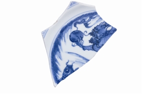 由此可見,這幅瓷畫中的“鯉魚”與“蒼龍”,是分別借鑒明代紋樣樣式,組合而成一個(gè)新瓷畫品種。明代時(shí),“鯉魚”和“蒼龍”一個(gè)應(yīng)用于民窯,一個(gè)應(yīng)用于官窯,一般不會(huì)處在同一幅瓷畫之中。清代對龍紋的禁用尺度放寬了,四爪以下的龍紋允許民間使用,才有可能出現(xiàn)魚龍同框的現(xiàn)象。
