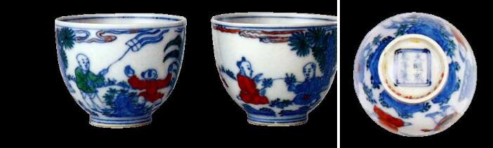 圖 2 【明】成化斗彩嬰戲圖杯及底書青花雙框“大明成化年制”六字雙行楷書款