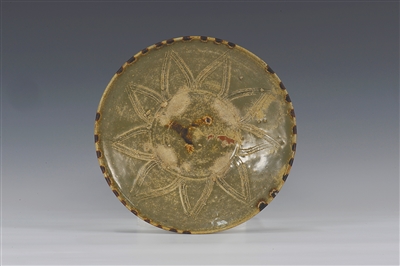 南朝青釉褐彩刻花盤。(海南省博物館藏)