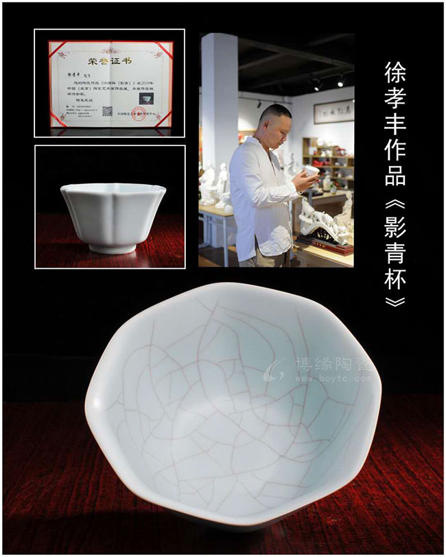 徐孝豐先后近20年從事陶瓷設(shè)計(jì)創(chuàng)作工作,特別對(duì)汝瓷制作有較深入的研究,其設(shè)計(jì)制作出一系列獨(dú)具特色的汝瓷作品,造型精美、品質(zhì)優(yōu)良,深?lèi)?ài)廣大客商好評(píng)。汝瓷在我國(guó)宋代已位居汝、均、官、哥、定五大名窯之首,原盛產(chǎn)于河南臨汝,隋煬帝大業(yè)初年(即公元605年),置臨汝為汝州,“汝州”因而得名。汝瓷燒制始于唐朝中期,盛名于北宋,北宋后期宋金戰(zhàn)亂不斷,興盛前后不過(guò)二十余年,隨著北宋的滅亡,汝瓷工藝也隨之?dāng)啻榱烁玫牧私馊甏,徐孝豐親自深入汝窯的原產(chǎn)地河南,了解汝瓷文化,而后徐孝豐又深入臺(tái)灣與當(dāng)代的制作藝術(shù)家交流學(xué)習(xí)汝瓷制作。
