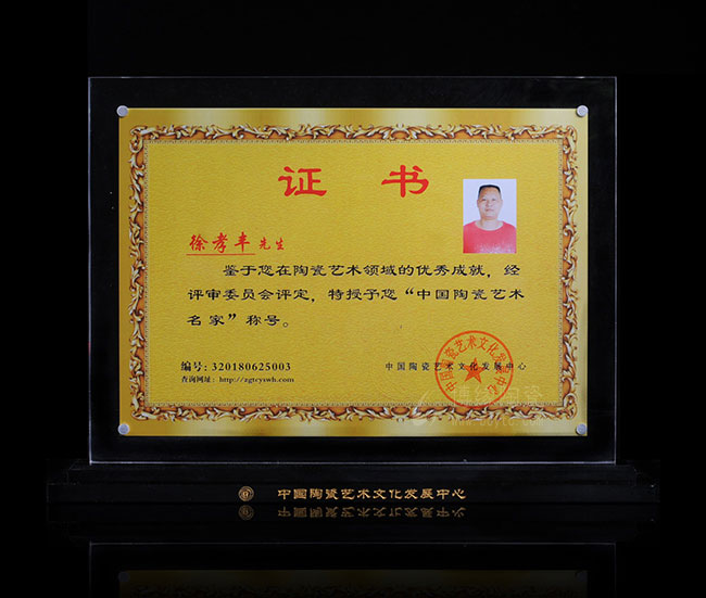 徐孝豐多件作品獲國(guó)內(nèi)外金獎(jiǎng),《樂(lè)禪杯》、《吉祥杯(玉黃)》、《西施壺》榮獲2018年中國(guó)(北京)陶瓷藝術(shù)家作品展金獎(jiǎng)。《祥福蓋碗》等三件作品獲2019年中國(guó)(北京)陶瓷藝術(shù)家作品展金獎(jiǎng)《如意蓋碗》獲2020年中國(guó)(北京)陶瓷藝術(shù)作品展金獎(jiǎng)等。